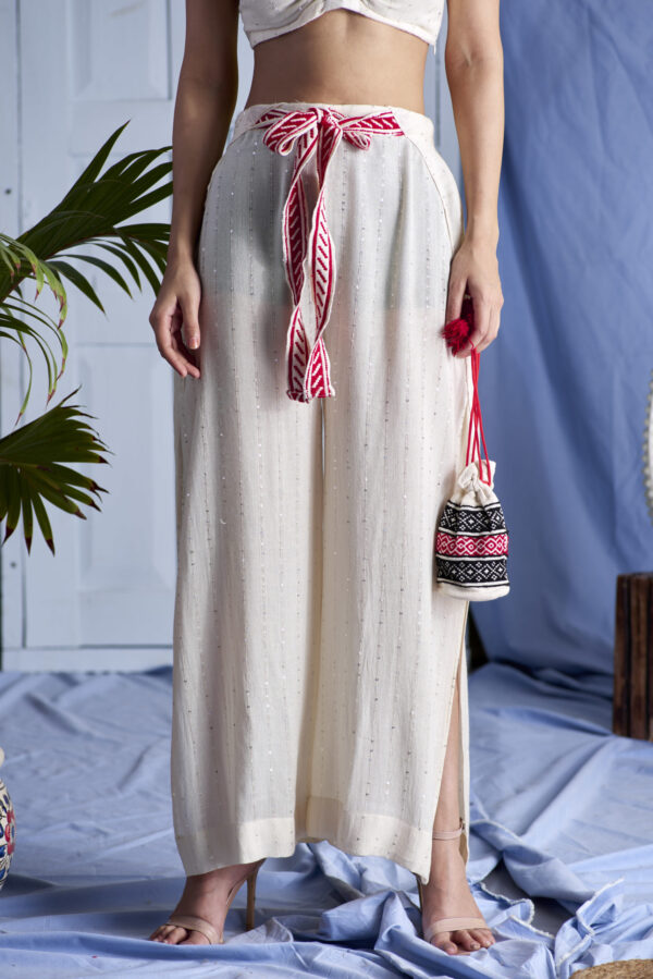 Whimsical yet appealing this Chad duo is for sure to be your next favourite this season. Care free jaunty pants with the embroidered belt adds on the drama.