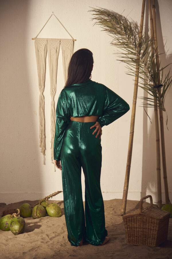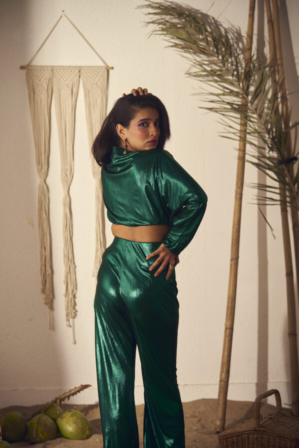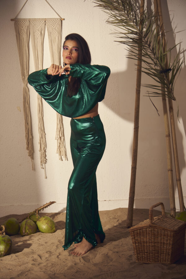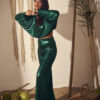The Palm Set in green strikes a passionate chord in your wardrobe that’ll reverberate for seasons to come. The neckline dips off your shoulders while sculptural ruching highlights each blouson sleeve.