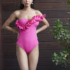 Colorful swim is back and set to brighten up your summer. This monokini with ruffle detailing is sure to make heads turn.